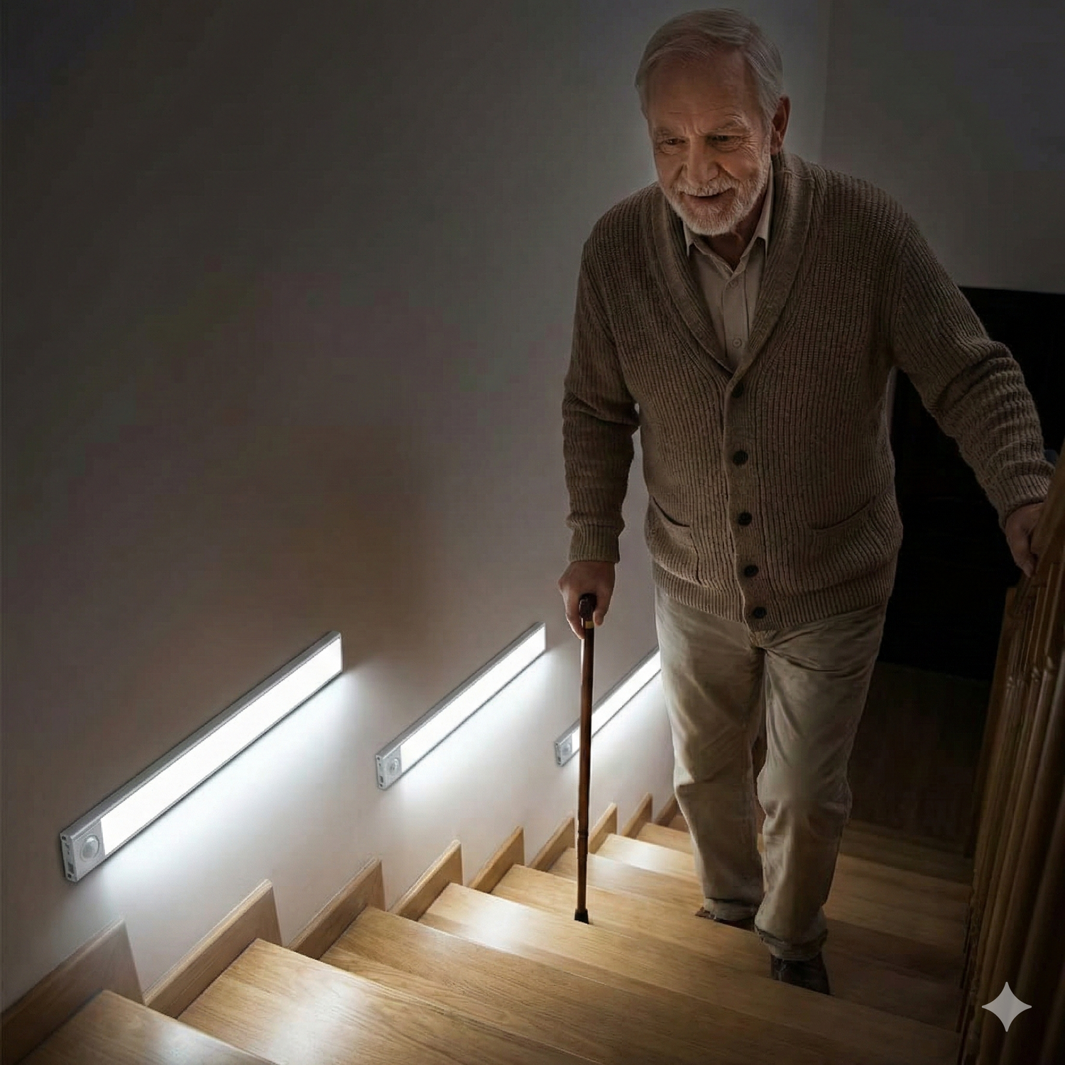 Luz nocturna LED con sensor de movimiento PIR, diseñada para mejorar la seguridad de personas mayores durante la noche. Se enciende automáticamente al detectar movimiento, proporcionando una iluminación inmediata y suave que ayuda a evitar caídas, tropiezos y desorientación.
